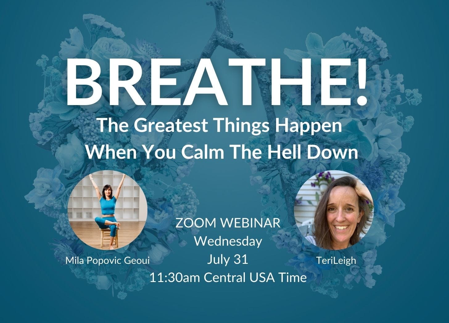 WORKSHOP: Breathe - so you can calm the hell down A 30-Minute Workshop with Mila Popovic Geoui & TeriLeighTeri Leigh πAug 01, 2024β Paid1242ShareAre you breathing?How often do you hold your breath?Thatβs how often you STOP your life from flowing.Start breathing NOW.This post is for paid subscribersSubscribeAlready a paid subscriber? Sign in